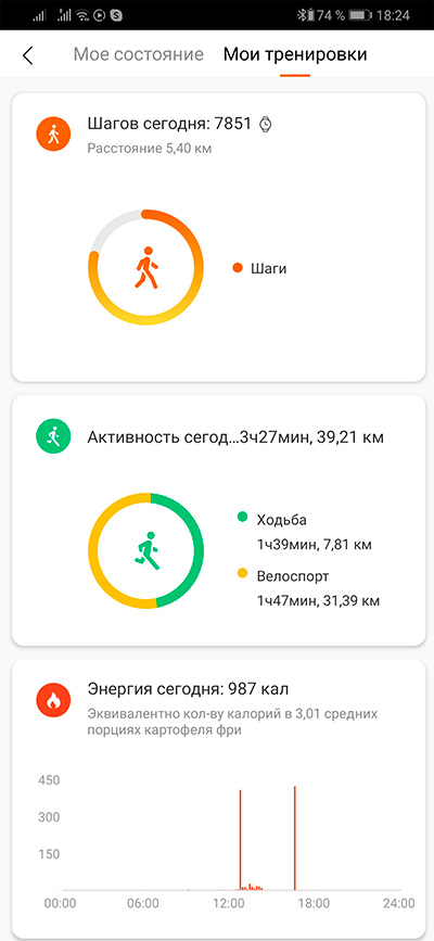Вчера прям спортивный денек получился - 8 километров пешком и 31,5 км на велике. Только Bip как-то пешеходную прогулку очень странно посчитал: и с километрами налажал, и с шагами. Я просто шел по сто раз промеренной трассе, там ровно 8 км. получается.