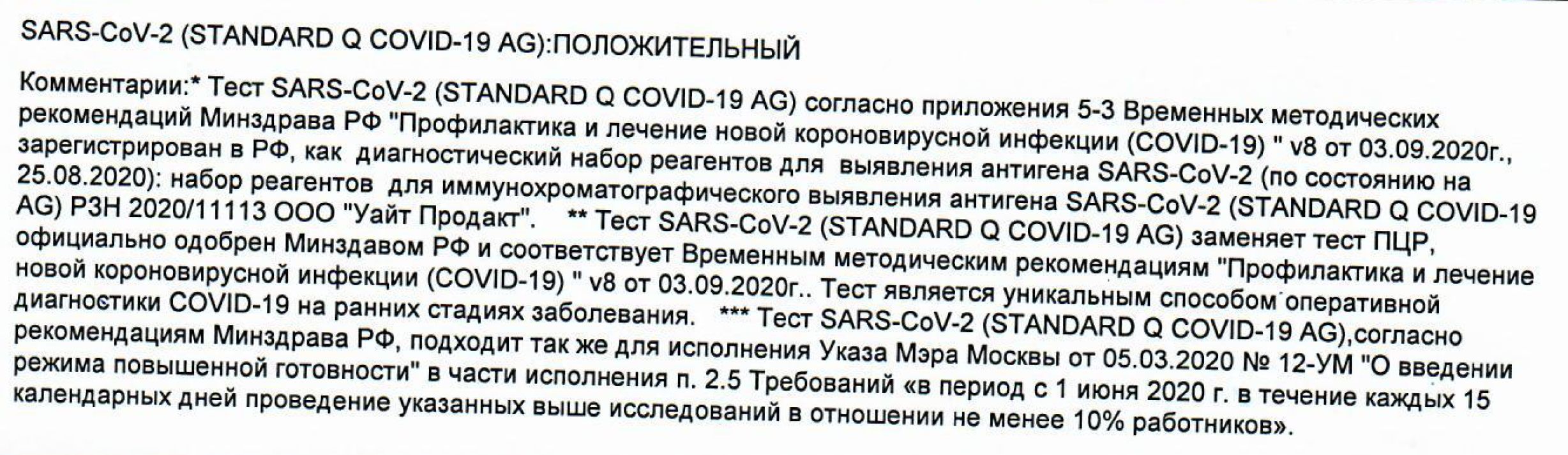 Итого: тесты работают эти. Не всегда точно, как мне сказали, но лже-отрицательно бывает часто. А вот лже-положительно крайне редко. Т.е. если показал - то почти точно ковид значит!