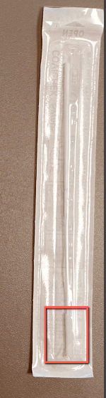 Сваб у системы средней жесткости, тонкий — таким удобно брать пробу: он не сгибается и при этом не травмирует слизистые.