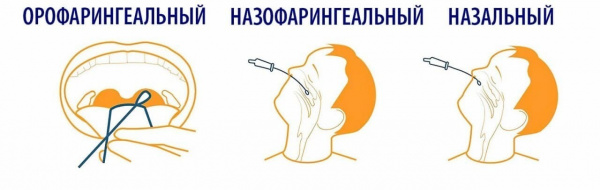 Пробу рекомендуется брать из носоглотки (назофарингеальным методом), но допускается также использовать назальный метод.