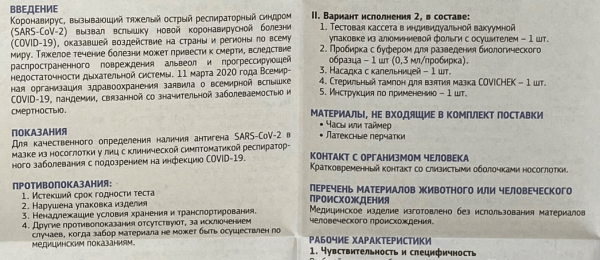 Тест предполагает забор пробы только назофарингеальным способом, т. е. через носоглотку.