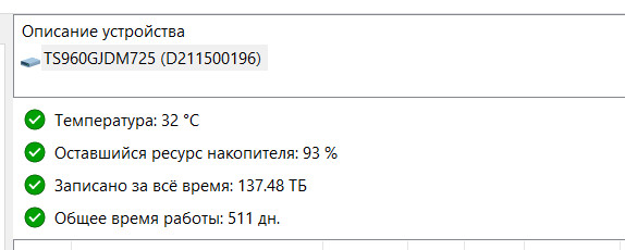 Поэтому таки да, завидую вам белой завистью. Вот состояние SSD в моём режиме использования... 😕
