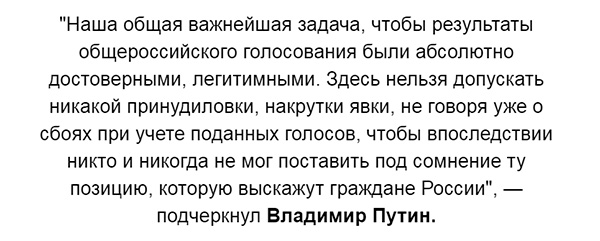 Я, на самом деле, сомневаюсь, что им пришлось что-то фальсифицировать. Лозунги, под которыми рекламировались поправки, напрямую затрагивают священных коров - 9 Мая, Традиционные ценности, Институт Семьи, а так же запрет геев. А разве большинству россиян нужно что-то большее?