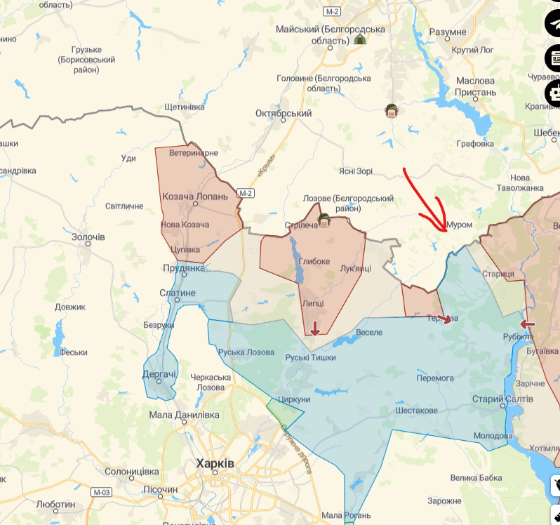 Там еще западнее этой карты сотни километров границы с Курской и Брянской областями. И никаких боевых действий не ведется.