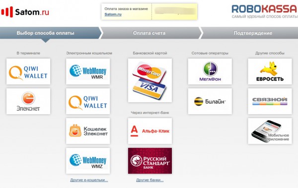 Согласитесь, возможность выбрать, каким способом оплатить покупку, очень важна для покупателя. Если на сайте будет указан только один, удобный для продавца способ, с большой долей вероятности можно сказать, что потенциальный клиент перейдет на другой сайт, где будут представлены разные варианты оплаты. Satom.ru позаботился об этом и предоставил своим клиентам возможность использовать разные варианты оплаты. Кроме стандартной оплаты на пластиковую карту продавца или наложенным платежом при получении товара, можно воспользоваться услугами двух популярных платежных агрегаторов.