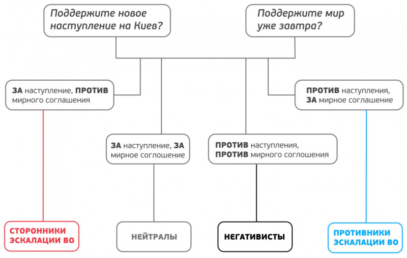 Не стоит пытаться интерпретировать этот опрос как определение числа сторонников Украины/РФ в широком смысле. Он только про эскалацию.