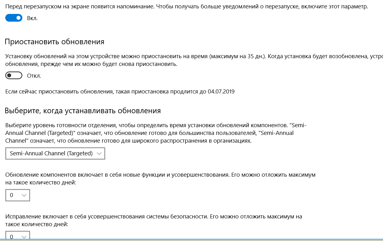 А настройки Semi-Annual Channel на моей редакции нет. Подозреваю, что они относятся только к каким-то последним версиям.