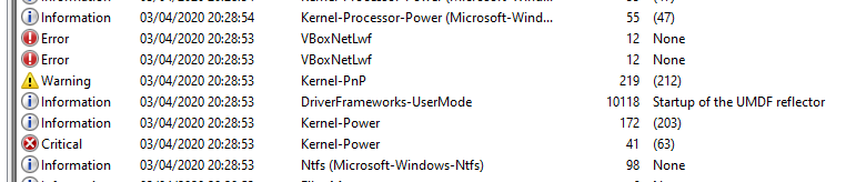 Извините за оффтоп - вчера во второй раз за всё время с новым железом (вроде, в начале-середине февраля вернули новую мать, сказав, что с ней всё в порядке и чинить не надо) сам по себе перезагрузился комп. Никаких апдейтов в это время не было, BSOD тоже не было. В Event Log -> System нашел вот такую критическую ошибку, наверно это оно (см. картинку). Судя по тому, что удалось найти - это просто означает "система не была выключена корректно".
