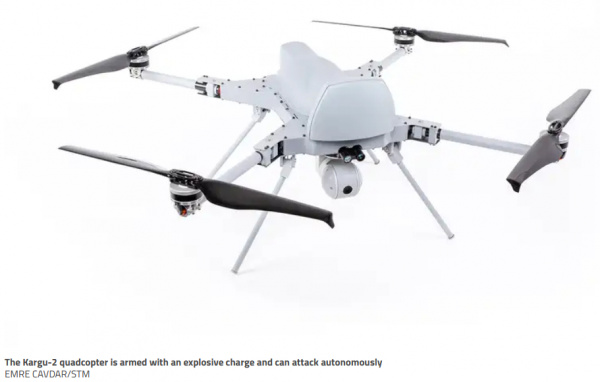 Дрон был произведен в Турции и работал в «высокоэффективном автономном режиме», то есть был запрограммирован для атаки целей без необходимости команд от оператора.