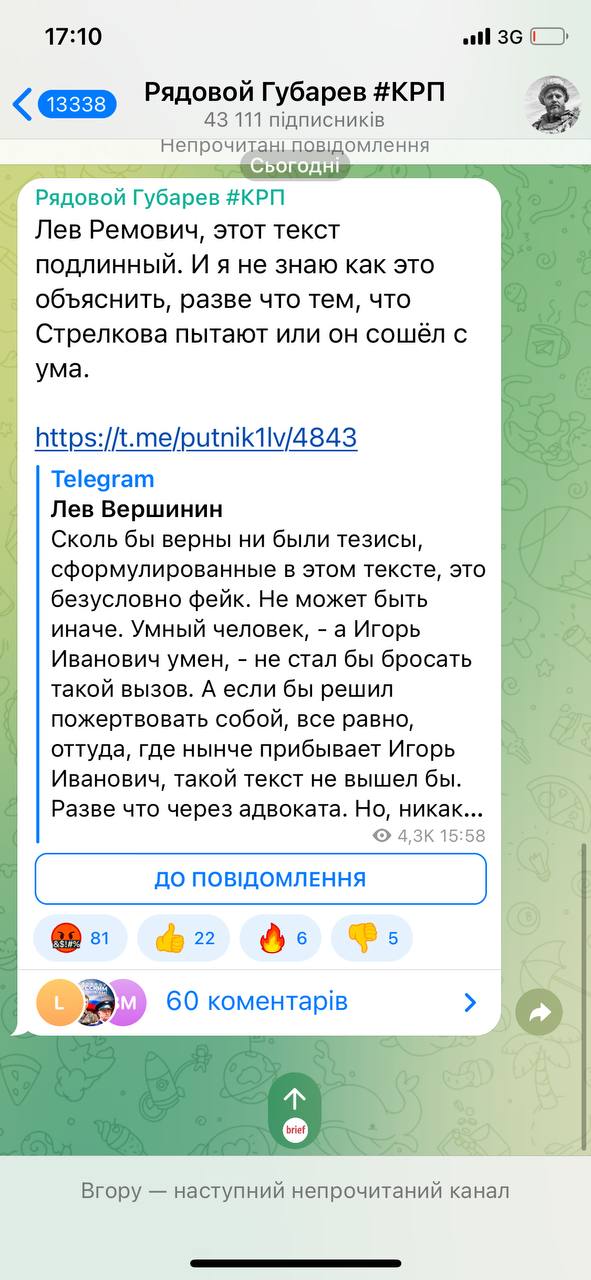 Со слов адвоката, Гиркина повезли в СИЗО в одном автозаке с азовцами и айдаровцами. Намёк на последствия куда хуже лишения холодильника.