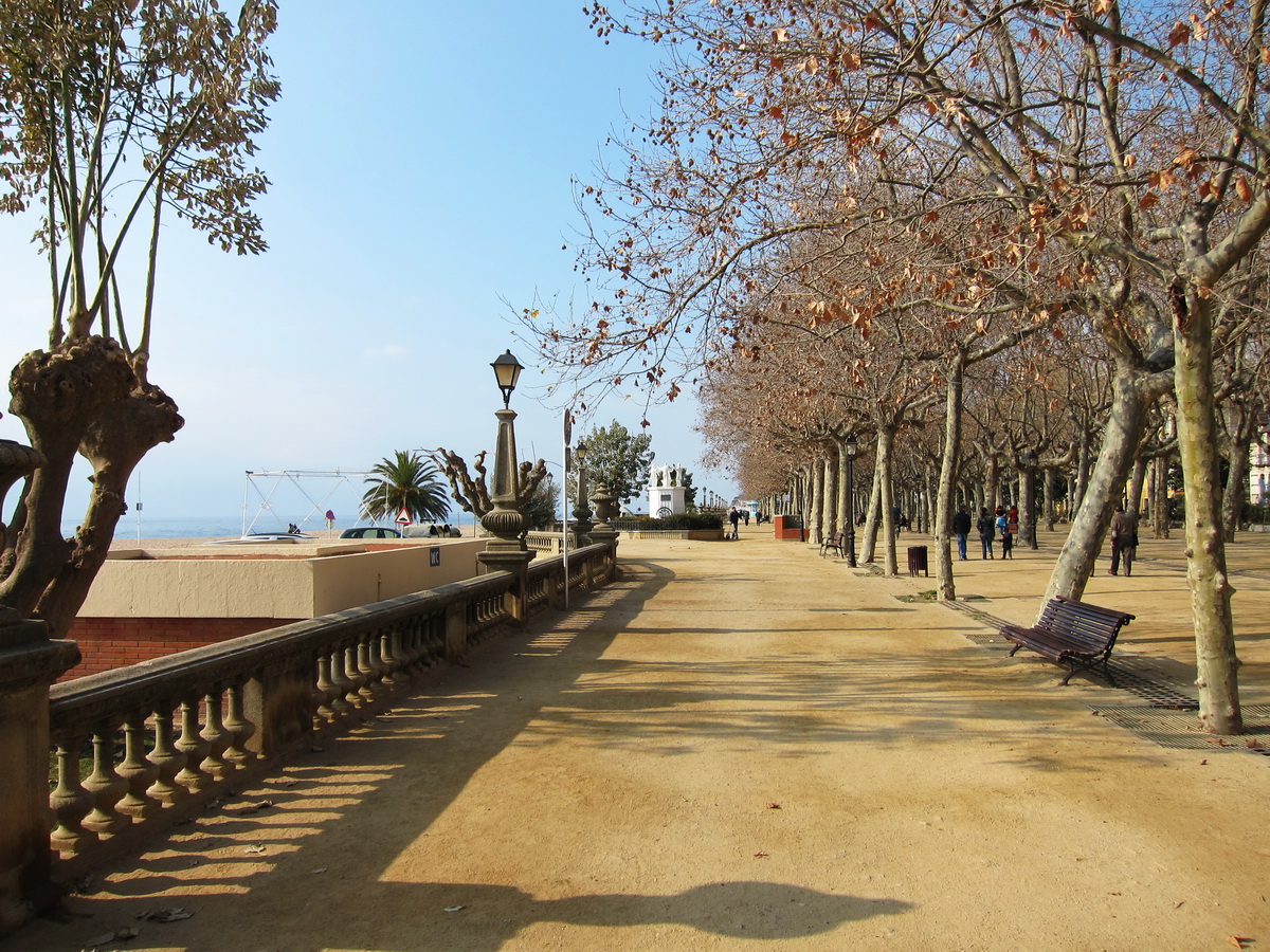Сейчас еще пустынно, а буквально через часок народу будет полно - пожилые каталанцы-каталанки кучкуются компаниями и что-то бурно обсуждают, большие семьи с друзьями выползают на пикнички, народ от школьного возраста до 30-40 бегает вдоль моря - правда, постоянно переговариваясь между собой, что во время бега не очень-то рекомендуется.