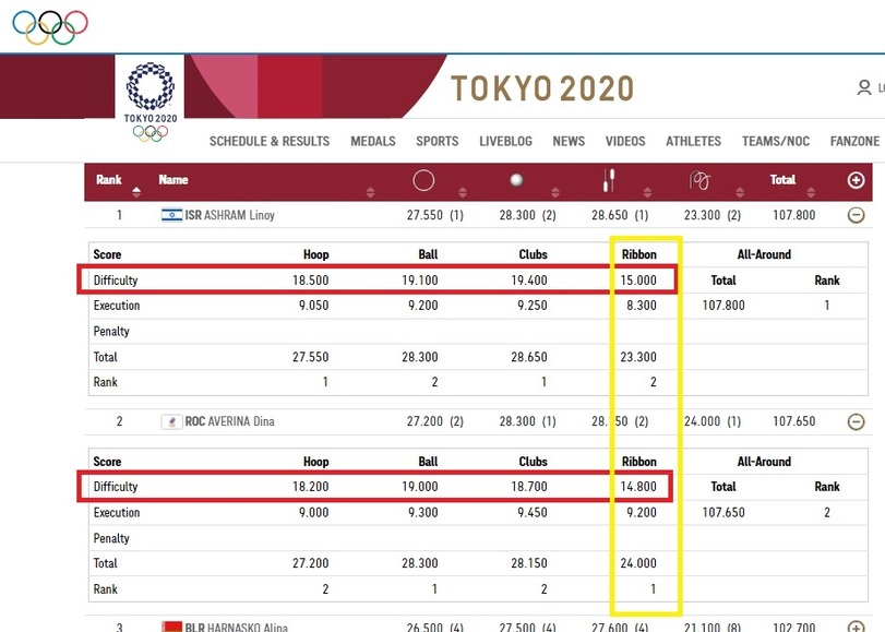 Т.е. Линой вела по сложности 1,3 балла, поэтому 0,7 балла за потерю ленты было недостаточно. И это пишет российское издание, которое по идее заинтересовано в том, чтобы "топить" за свою спортсменку.
