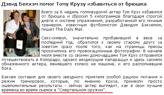 А меня больше позабавила фраза о том, что Бэкхем (мега-звезда футбола когда-то) ныне "работает" личным тренером у Тома Круза. На самом деле, стоило переезжать в жить в США.