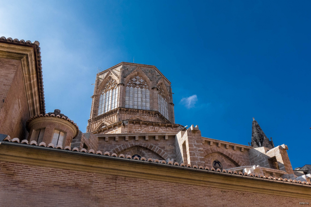 Итак, Кафедральный собор святой Марии Валенсии (Catedral de Santa María de Valencia). Первоначально, как это часто бывает в данных краях, здесь был римский храм богини плодородия. Потом пришли арабы и сразу все разрушили, построив на этом месте мечеть. Когда Арагонские короли вышибли арабов из этих краев, на меcте разрушенной мечети заложили собор - это было в 1262 году. Строили собор до 1356 года, причем и впоследствии его много раз расширяли и перестраивали. (Да и сейчас его нередко реставрируют, поэтому в прошлое свое посещение Валенсии мы собор посетить так и не смогли.)