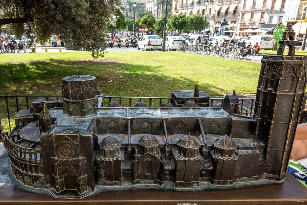 На заднем плане - соборная колокольня Мигелете (Miguelete) или Микалет (Micalet). Название ее происходит от самого большого из 12 колоколов звонницы колокольни. Туристы могут подняться на колокольню по винтовой лестнице - там всего-то 207 ступенек - и осмотреть окрестности.