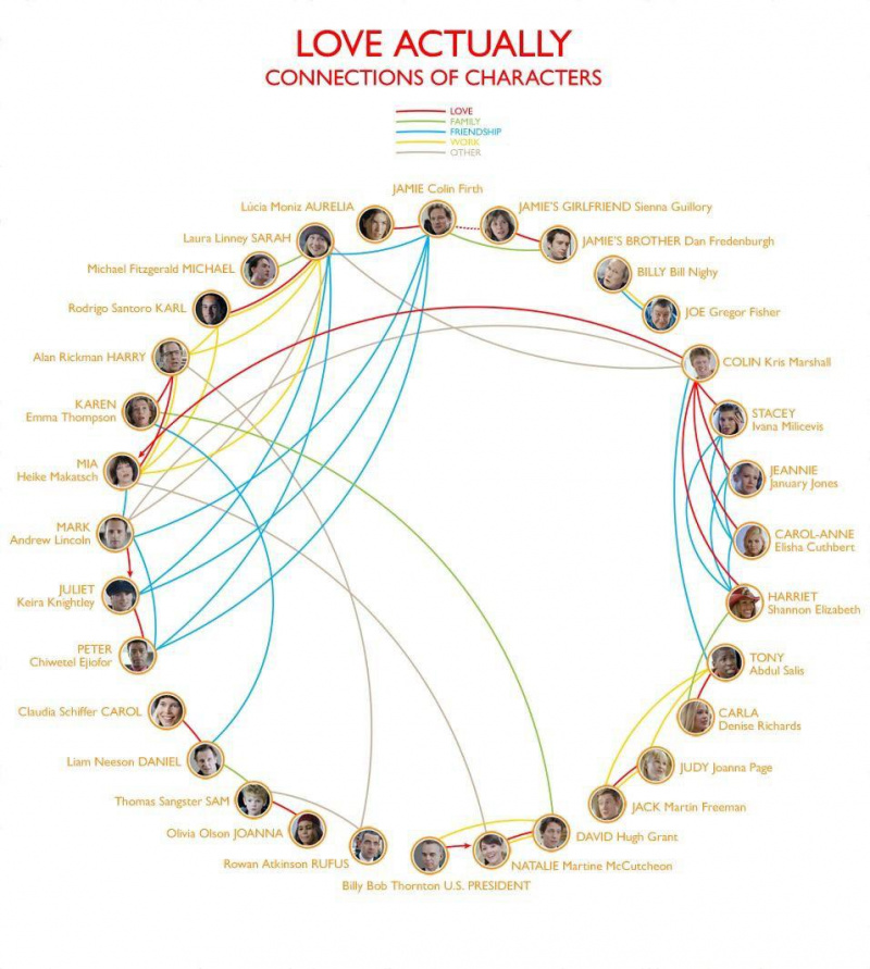 Любопытный какой график: родственные и дружеские связи персонажей фильма "Реальная любовь".