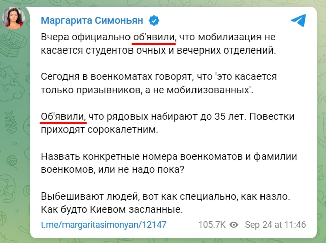 Ну, оно понятно, что воевать в Украину пойдёт кто угодно, но никак не подлежащие мобилизации сынки путинских чиновничков и пропагандонов. В The Insider собрали сведения о некоторых сынках влиятельных родителей, подлежащих мобилизации Вот большая статья, ну и краткая выжимка.