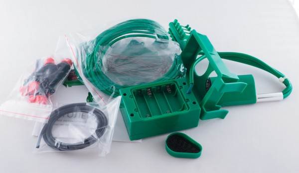 В комплекте: блок управления, моторчик, разветвитель, трубки, дозаторы с удлинительным шлангом.