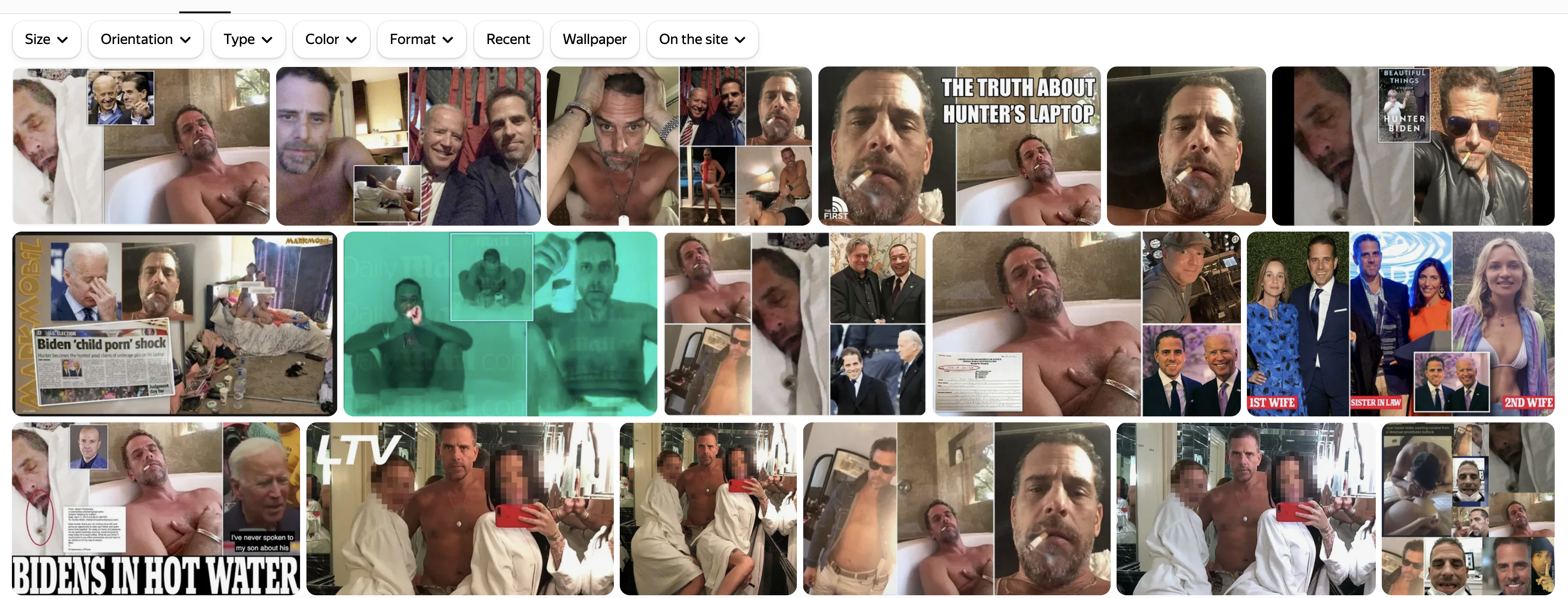 Например, фото пьяного, обкуренного, с проститутками и пр. Хантера Бйадена навалом в сети, но Гугл их сознательно скрывает, а как это называется?