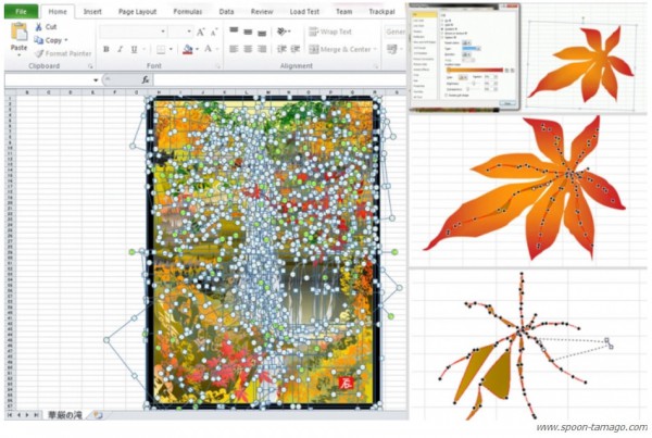 77-летний японец Тацуо Хориучи для воплощения своих идей в полотнах использует Microsoft Excel — программу из офисного пакета софта, ориентированную на работу с электронными таблицами. Талантливый художник рассмотрел в Excel многофункциональный инструмент для рисования, значительно превосходящий по своим возможностям Word и даже Paint, и при этом позволяющий ему не ударить в грязь лицом перед творениями из Photoshop или того же Illustrator. (Отсюда.)