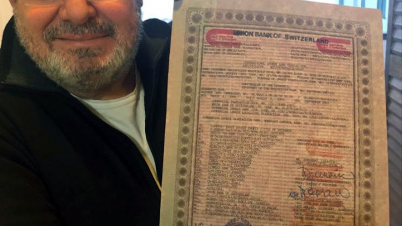 Виктор Тарраделлас показывает предполагаемый документ из швейцарского банка