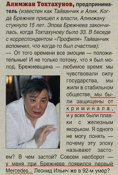 В новом "Профиле" различные люди высказываются о брежневской эпохе. Особенно мило высказался Тайванчик: