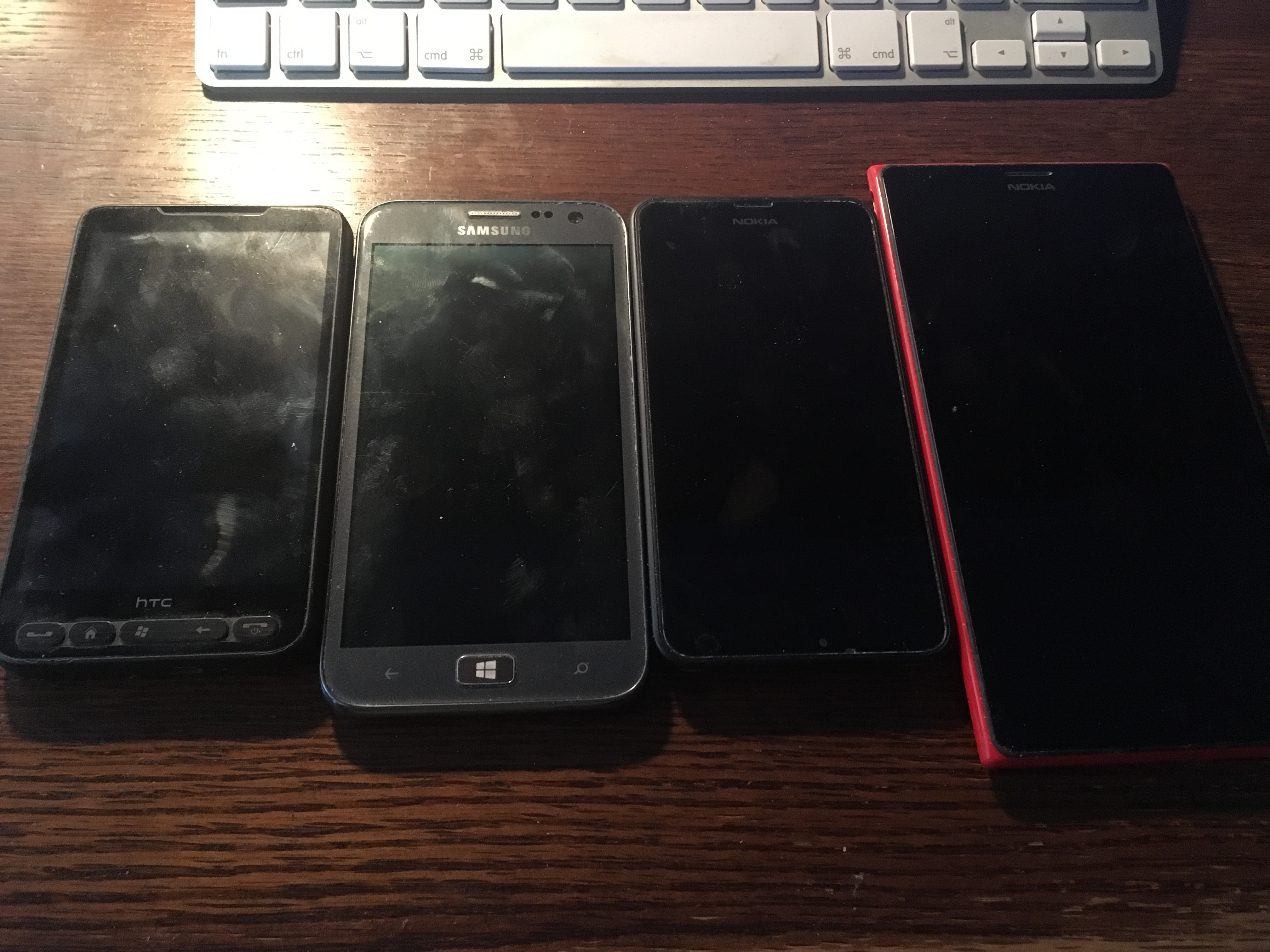 А где я сказал, что они были плохи? И из них сдохла недавно только 1520 - дергается экран. Все остальные вполне работоспособны как телефоны и как останки своих неподдерживаемых операционных систем. Так, болтаются в ящике. 1520 - да, можно выкинуть, а работоспособные - как-то рука не поднимается. HTC HD2 - вообще артефакт, пущай будет.