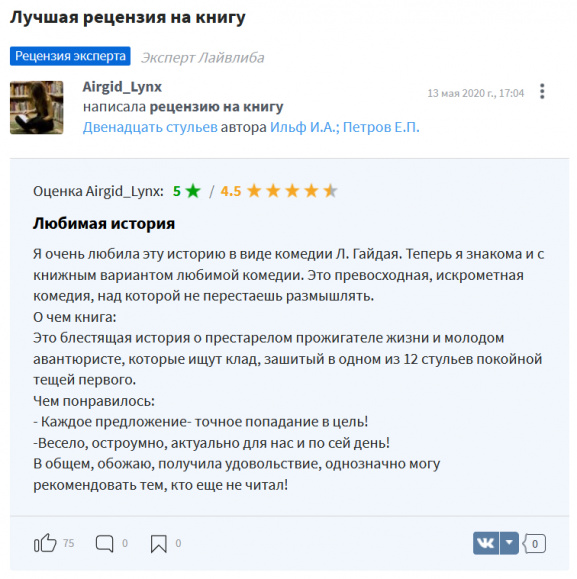 Ну да, смешно. Только это там над многими отзывами написано. 😄 Книга "12 стульев", 500 рецензий экспертов... рискну предположить, лайвлиб просто так оформляет рецензии тех, кто уже много рецензий написал?