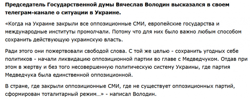 Там еще Володин из той же серии квакнул, и это тоже было прекрасно. Про свободу слова заквакали и про тоталитаризм. Чья бы корова...