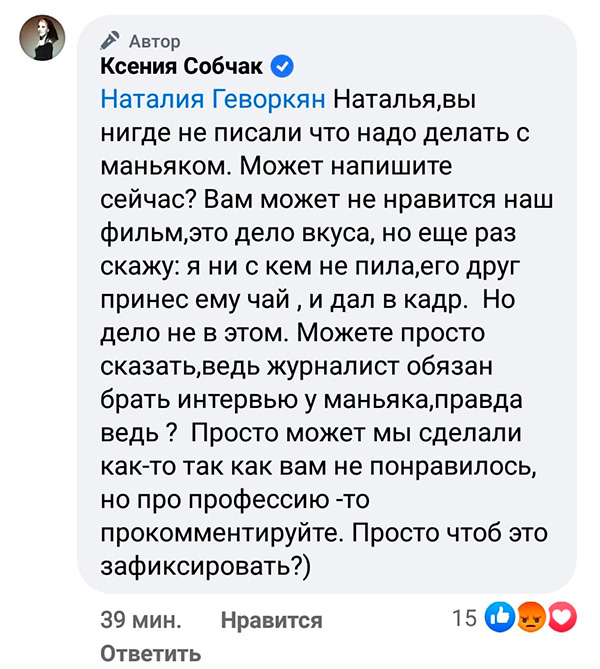 Отсюда простейший вывод: вся эта история – не более чем какие-то "внутритусовочные разборки". Кто-то всего лишь пытайтся хайпить на негативе о том, что Собчак в кои-то веки "смогла в журналистику" и умудрилась сделать слишком уж дерзкое (по нашим меркам) интервью с маньяком. Только и всего. Зато шумихи в блогосфере теперь выше крыши, каждый норовит пнуть как-нибудь "пооригинальнее", "за побольше лайков". Ну детский сад же ж, ну ей-богу... ?