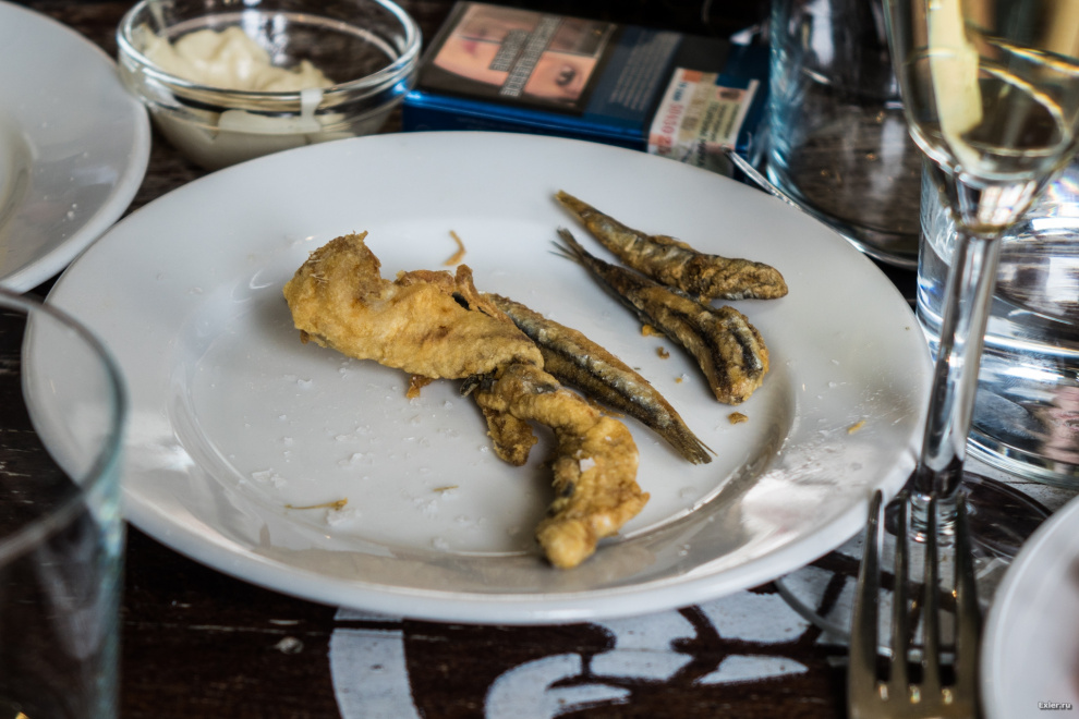 Еще один популярнейший вид легкого закусона - вот такие маленькие рыбки, которые целиком обжариваются в легком кляре. Обычно довольно вкусно, хотя зависит от того, как их приготовить.