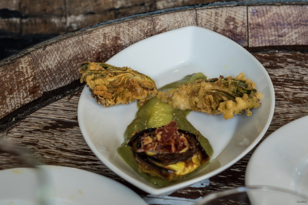 Ну а дальше пошли изыски. Понятно, что тапас можно сделать из чего угодно, рассказал нам повар. Но если как следует постараться, то можно сделать изысканные тапас из всяких интересных продуктов.