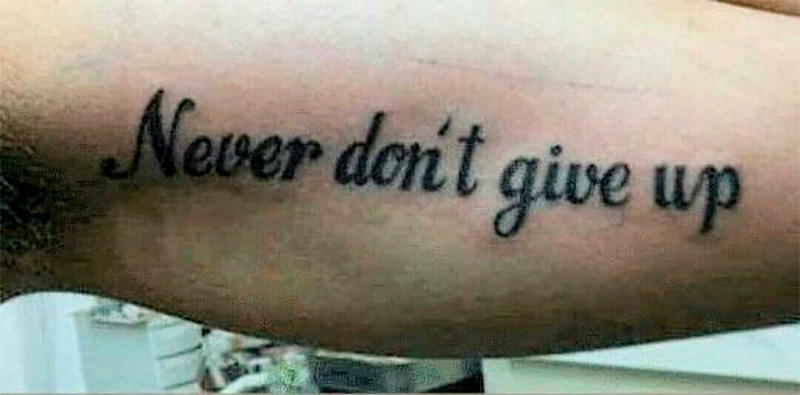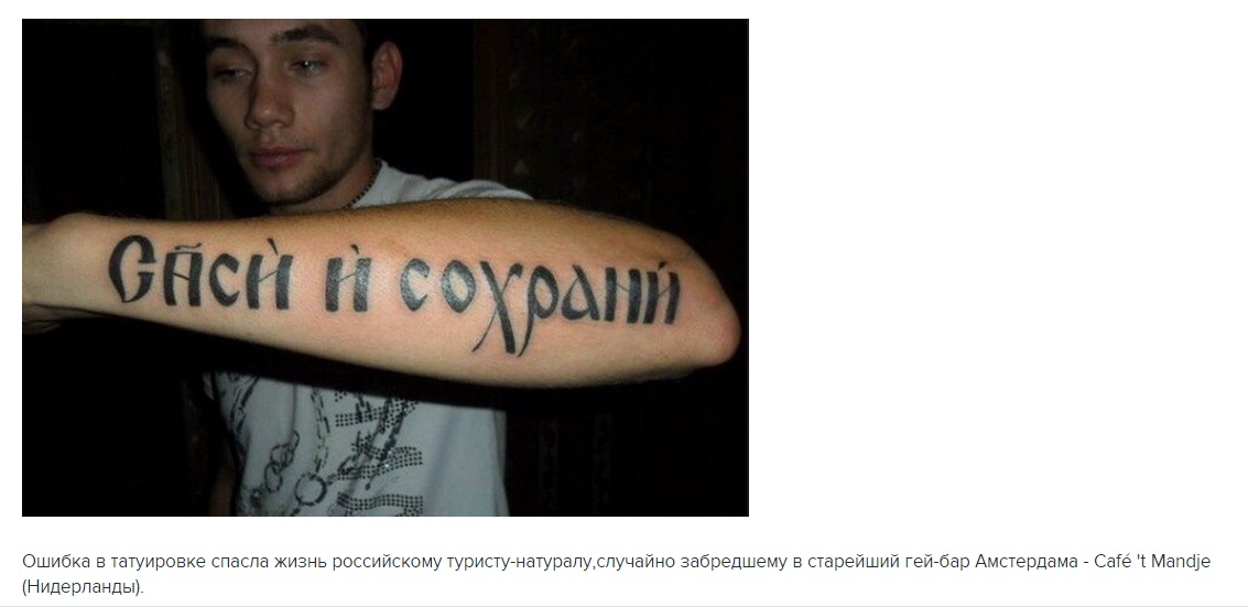 Вот так попадется тебе татуировщик-двоечник - и будешь всю жизнь ходить с идиотской фразой на собственном теле.