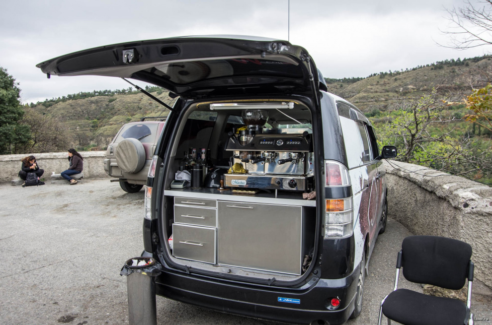 Рядом с фигурой Матери Грузии стоит вот такой передвижной кафетерий. А что, хорошая идея, у туристов кафетерий пользовался популярностью.