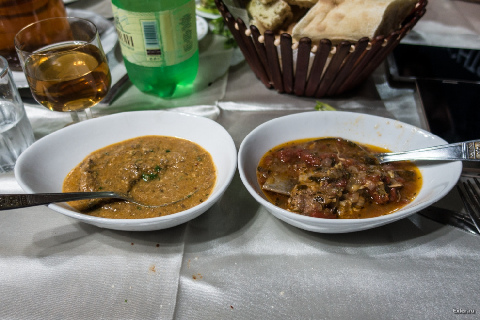 Слева - харчо с орехами, справа - я это название не выговорю. Что харчо, что не выговорю - офигительно вкусно.