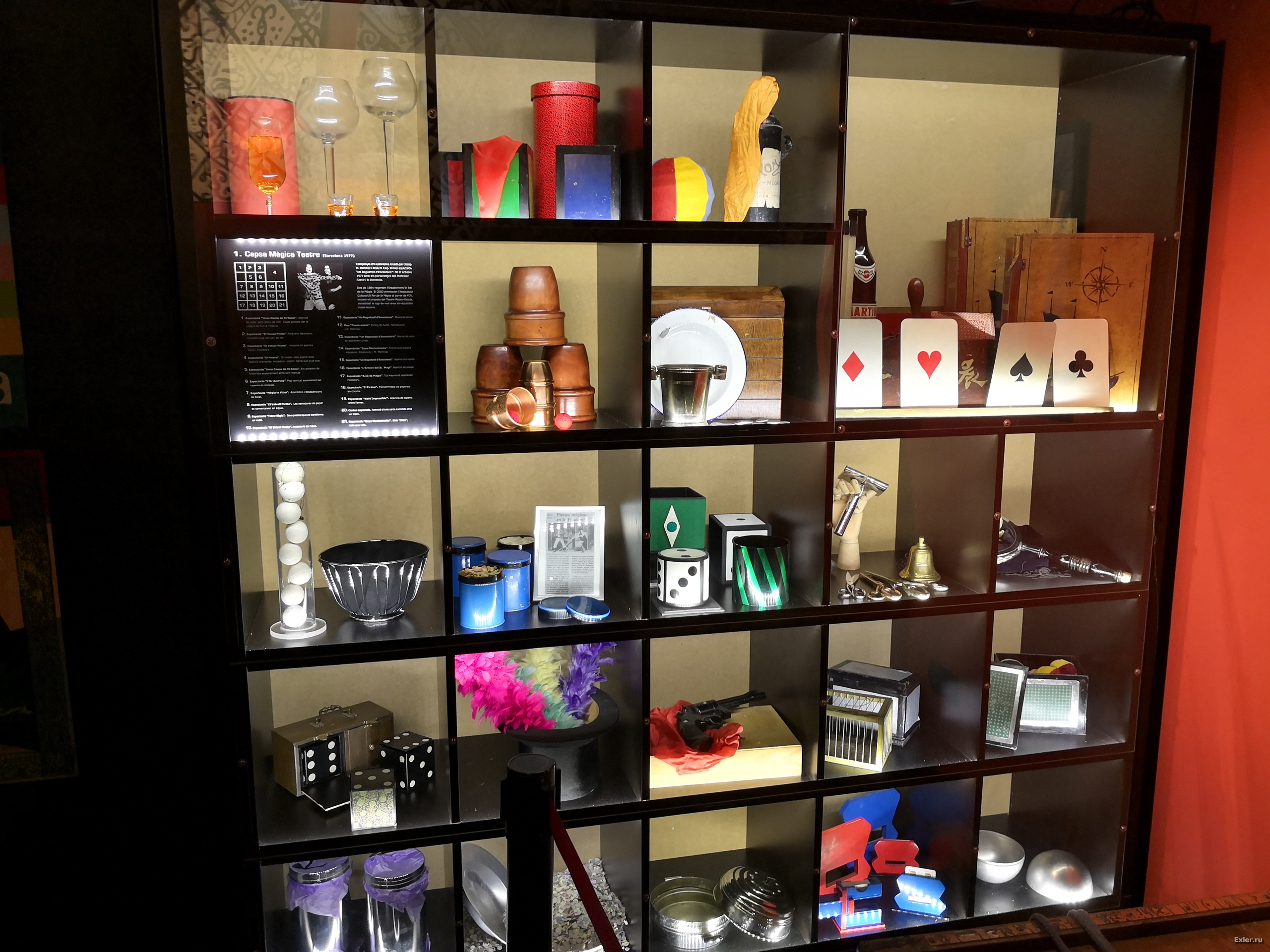 О музее я расскажу чуть позже, ниже, сначала - о самом шоу. (Мы ходили на 12-часовое представление для детей.) Оно простенькое, идет порядка часа, но реально очень и очень веселое. Я не знаю, как в остальные дни, когда выступают и другие фокусники, но вот этот Mag Ramó, который был у нас (у него есть страничка на Facebook) - просто бомба. Фокусы-то у него достаточно простенькие (ну и будем учитывать, что концерт был имено для детишек), но он настолько невероятно артистичен, при этом великолепно танцует, шикарно двигается и одновременно классно юморит, причем еще и отлично взаимодействует с детьми - в общем, и мы с женой также получили большое удовольствие, а уж младший Экслер был в полнейшем восторге.