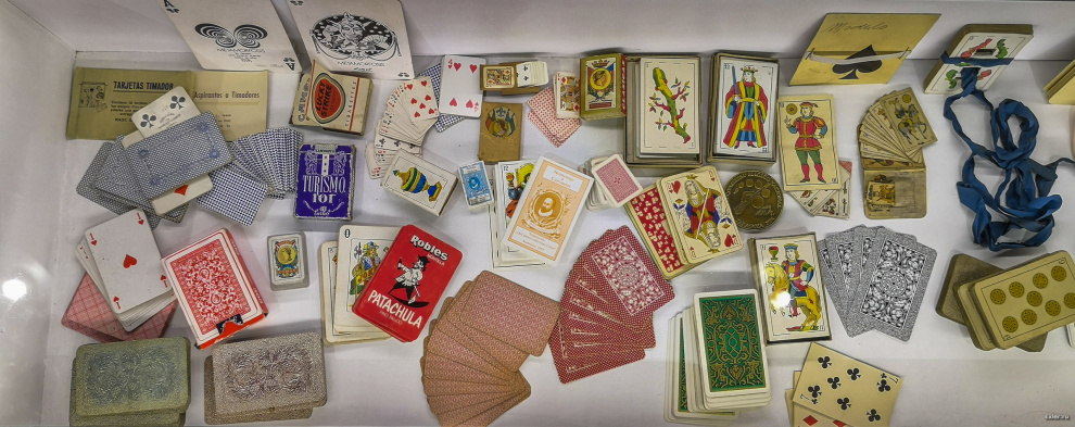 Это уже в фойе театра рядом с барчиком - стенды, на которых всякое карточное оборудование для фокусов.