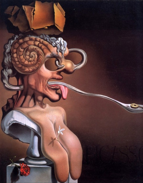Своего учителя Пикассо Дали себе довольно своеобразно представлял: вот, например, портрет Пикассо работы Дали.