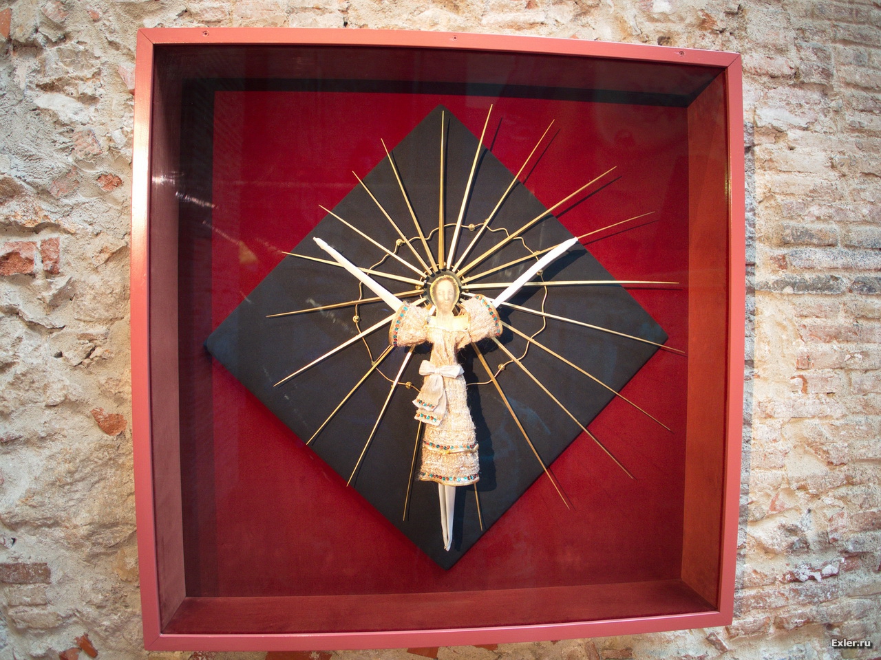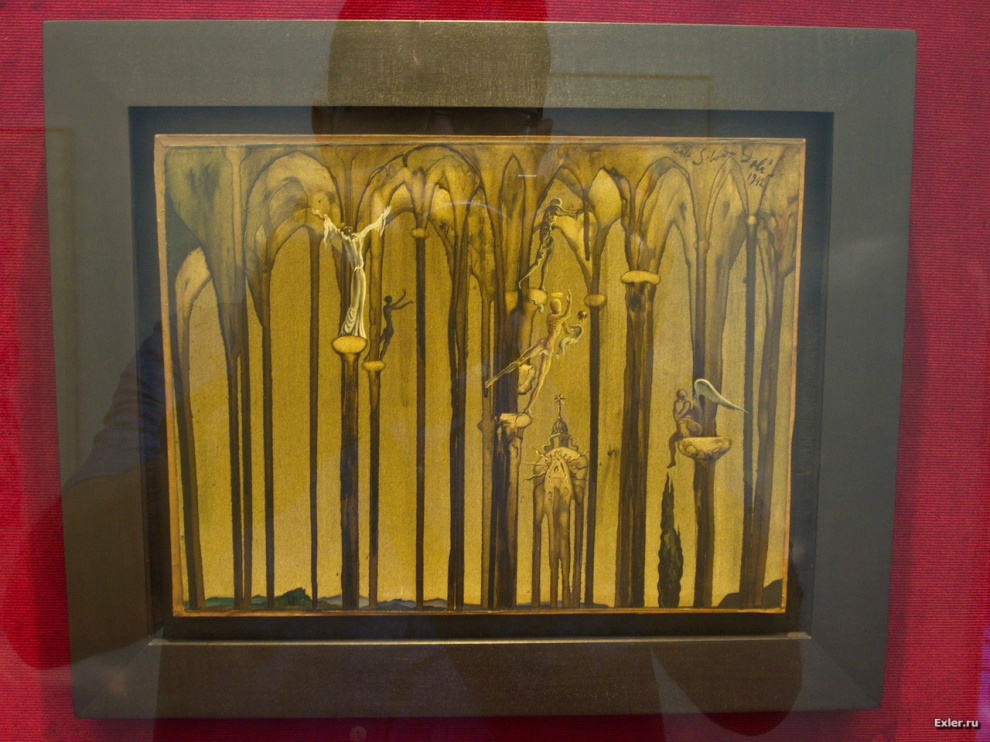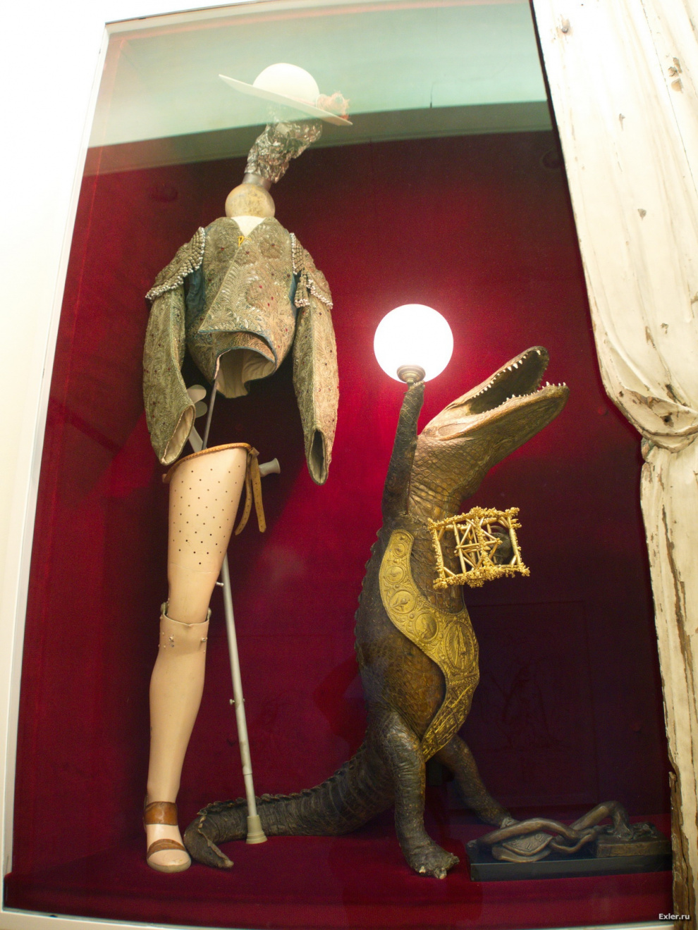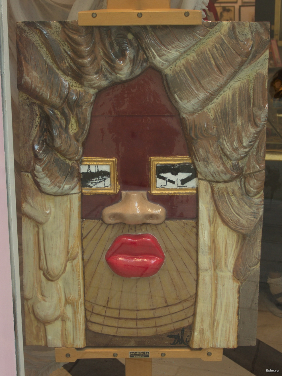 А это склеп с телом самого Дали - да-да, он похоронен в этом музее. В зале со склепом выставляются его ювелирные работы. У склепа тоже обожают фотографироваться туристы, несмотря на то, что там очень темно, а снимать со вспышкой в музее не разрешают нигде. Поэтому я минут десять ждал, чтобы успеть щелкнуть надгробную плиту без "Люся, дивись який я гарний у трупа Дали". Впрочем, большинство фотографирующихся не в курсе, что это склеп, и что здесь захоронен Дали. Кстати, он действительно был маркиз - это звание ему было пожаловано королем.