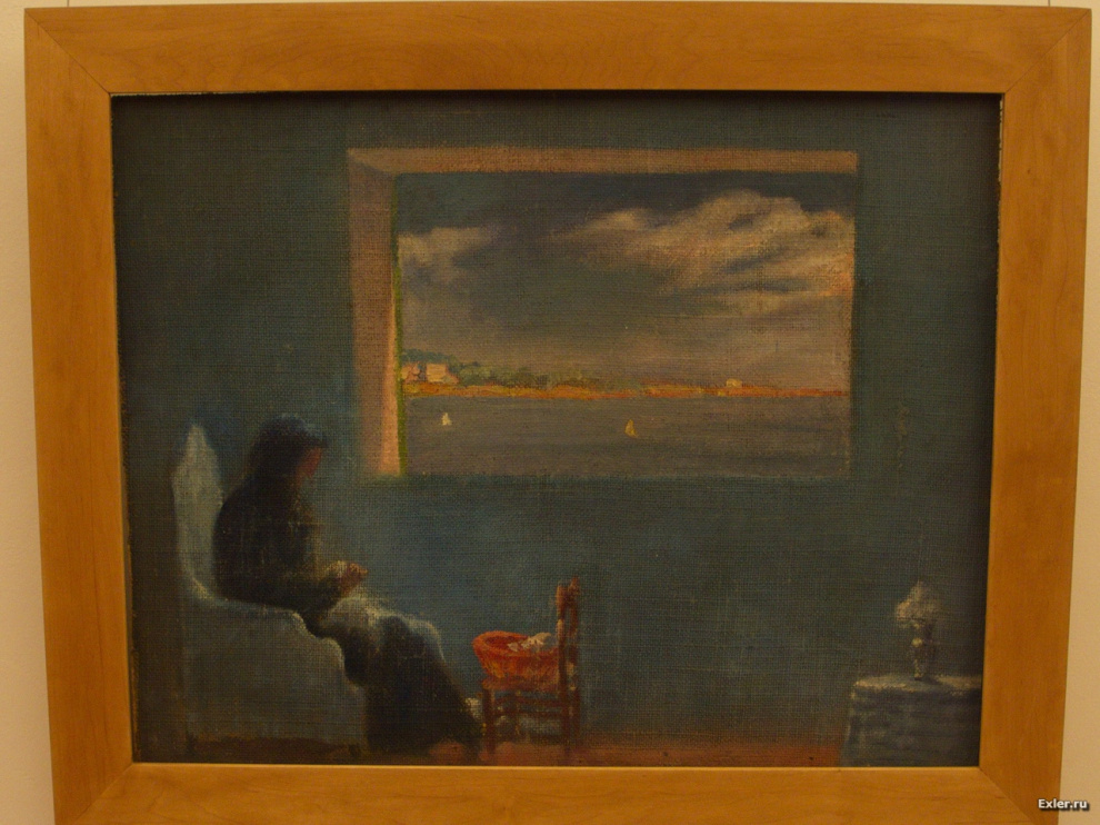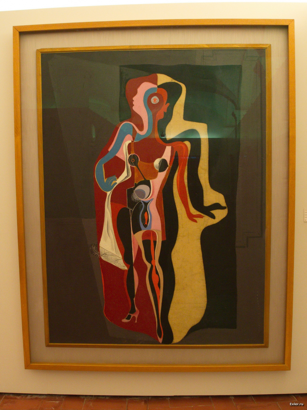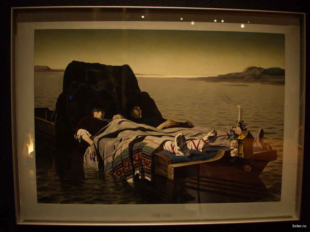 Если заглянуть в окошечко в стене за картинами, изображающие глаза, можно увидеть вот такое эдакое. Я не знаю, что это. Наверное, иллюстрация к "Вишневому саду".