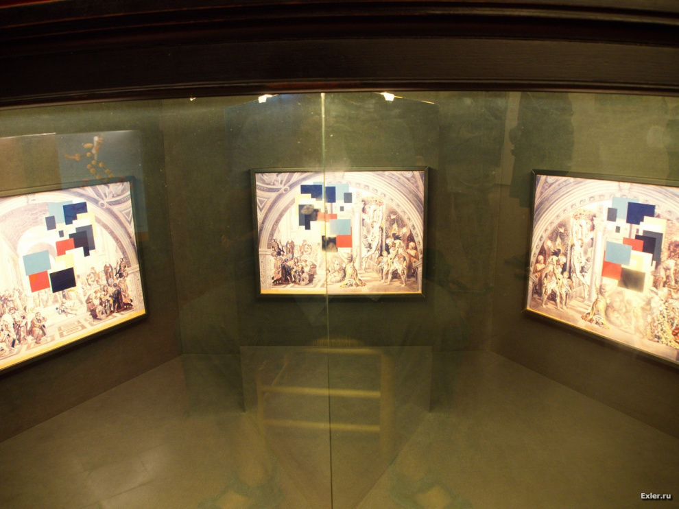 В музее полно всяких оптических иллюзий, которые Дали очень любил. Вот, например, три одинаковые картины: если их рассматривать под правильным углом, возникает иллюзия трехмерности.