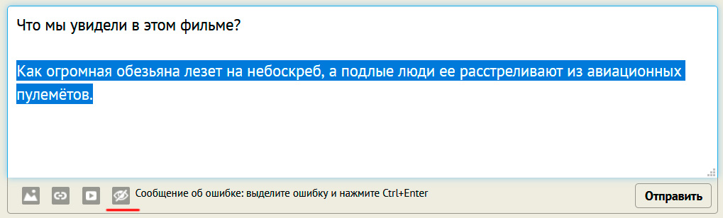 Сделали тэг "спойлер" в комментариях. В основном, пригодится для комментариев к рецензиям на фильмы, но могут быть и другие случаи, когда этот тэг будет полезным. Также под спойлер рекомендуется убирать большие простыни текста, которые вы цитируете.
