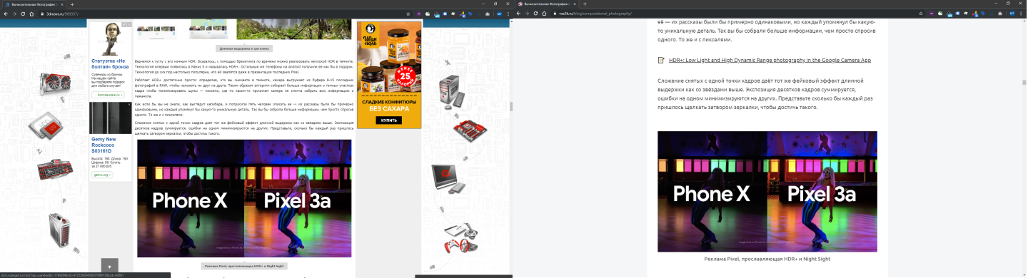 Классная статья, спасибо! Наконец-то я понял, почему все так писают кипятком от камер на Pixel'ях, хотя Google вроде бы ни в матрицы, ни в линзы особо не умеет. А вот в вычисления, алгоритмы, нейросети и ИИ Google очень даже умеет, поэтому и снимают их телефоны хорошо.