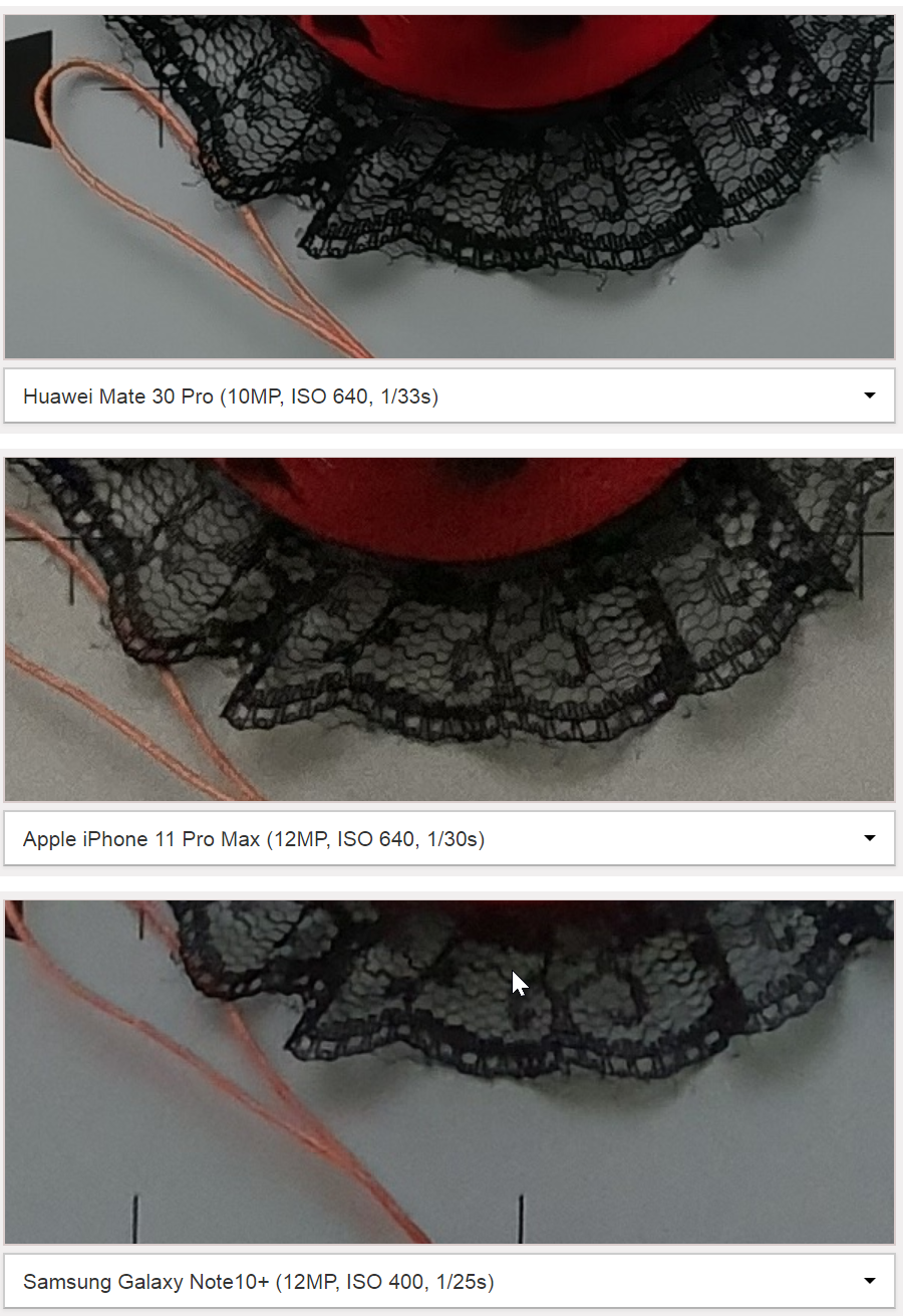 Вот здесь хорошо видно что по детализации примерно сравнялись но шумы разные, на хуавее их почти нет даже при плохой освещенности.