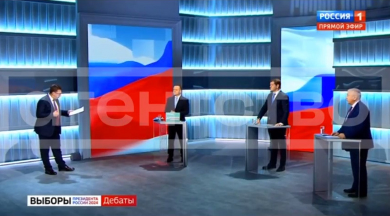 Путин на дебаты не пришел, ошибся дверью. Но остальные трое в сумме примерно он. За Слуцкого на дебаты пришел клон-заместитель из ЛДПР.