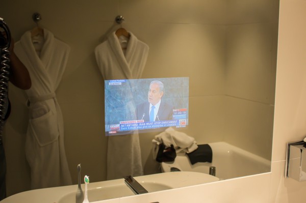Забавная штука - телевизор в зеркале. Я такие раньше видел в лифтах отелей, но вот чтобы прямо в ванной номера - еще не встречал.