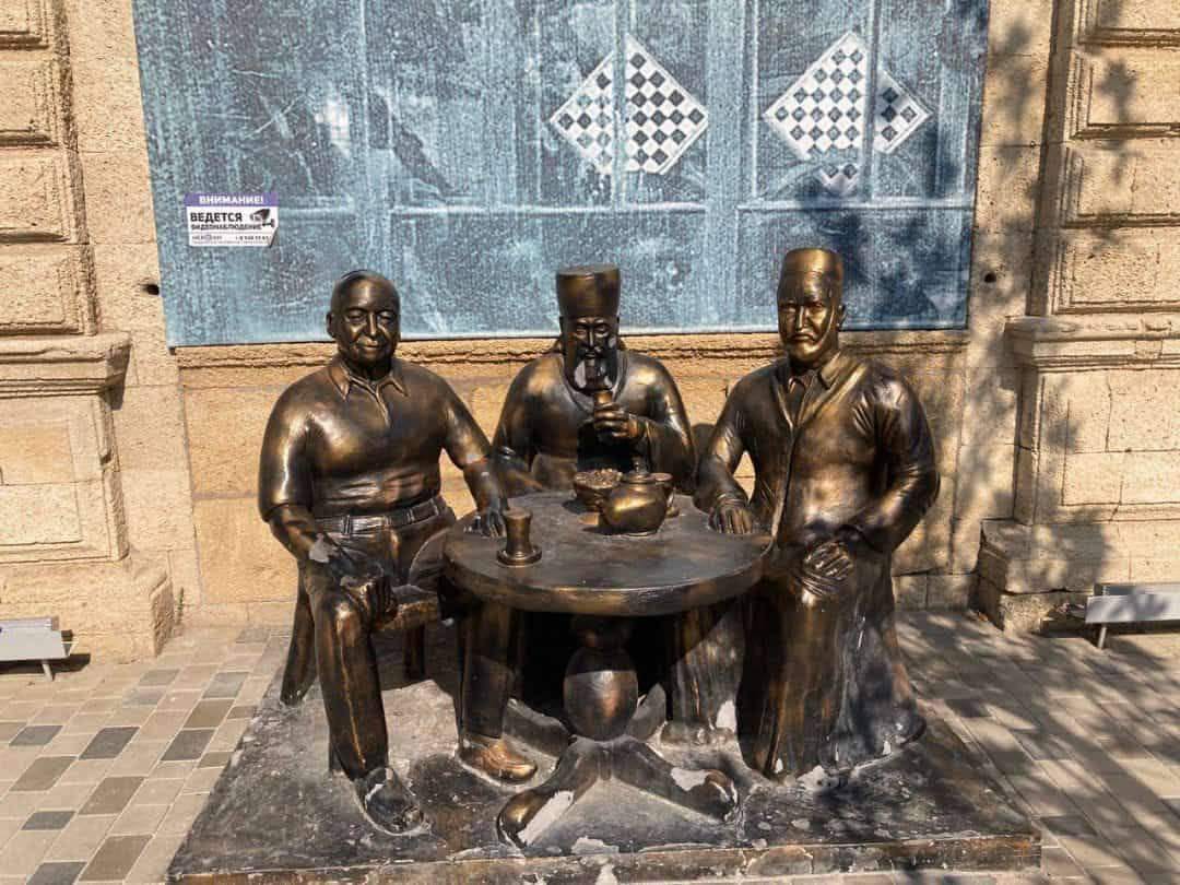Памятник братству трех религий в Дербенте - раввин, православный священник, мулла.