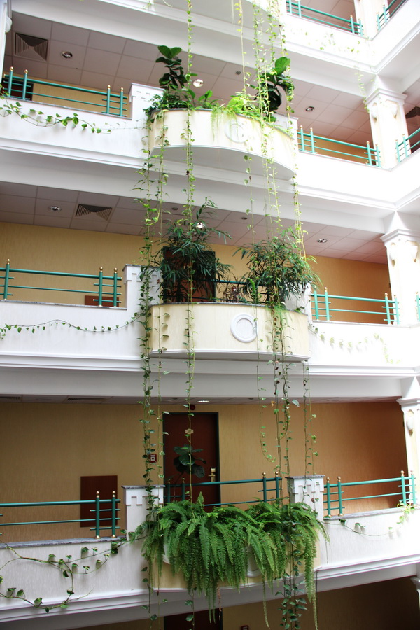 Балкончики в коридорах забавно украшены зеленью.
