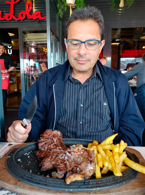 Обычный антрекот. Кстати, небольшой, просто он на переднем плане, размер искажен.