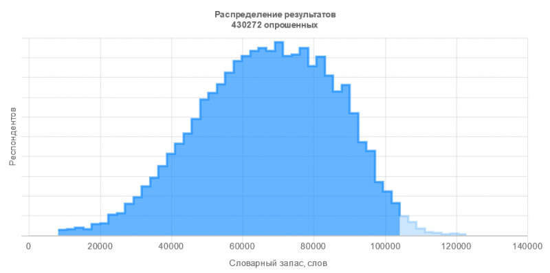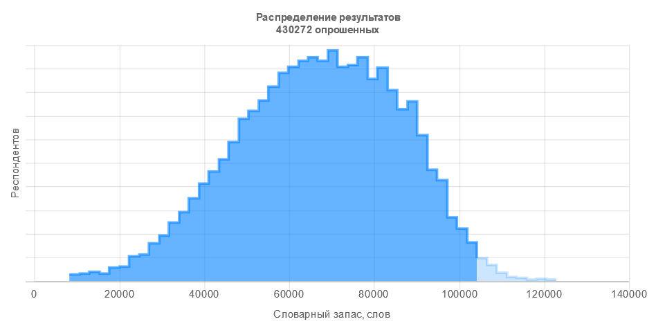 По-русски 116 тыс, по-английски 14,7 тыс, оба со 100% честностью. В обоих "лучше 99,9%" для русскоязычных, а вот если сравнивать с носителями английского - на уровне 16-летнего.